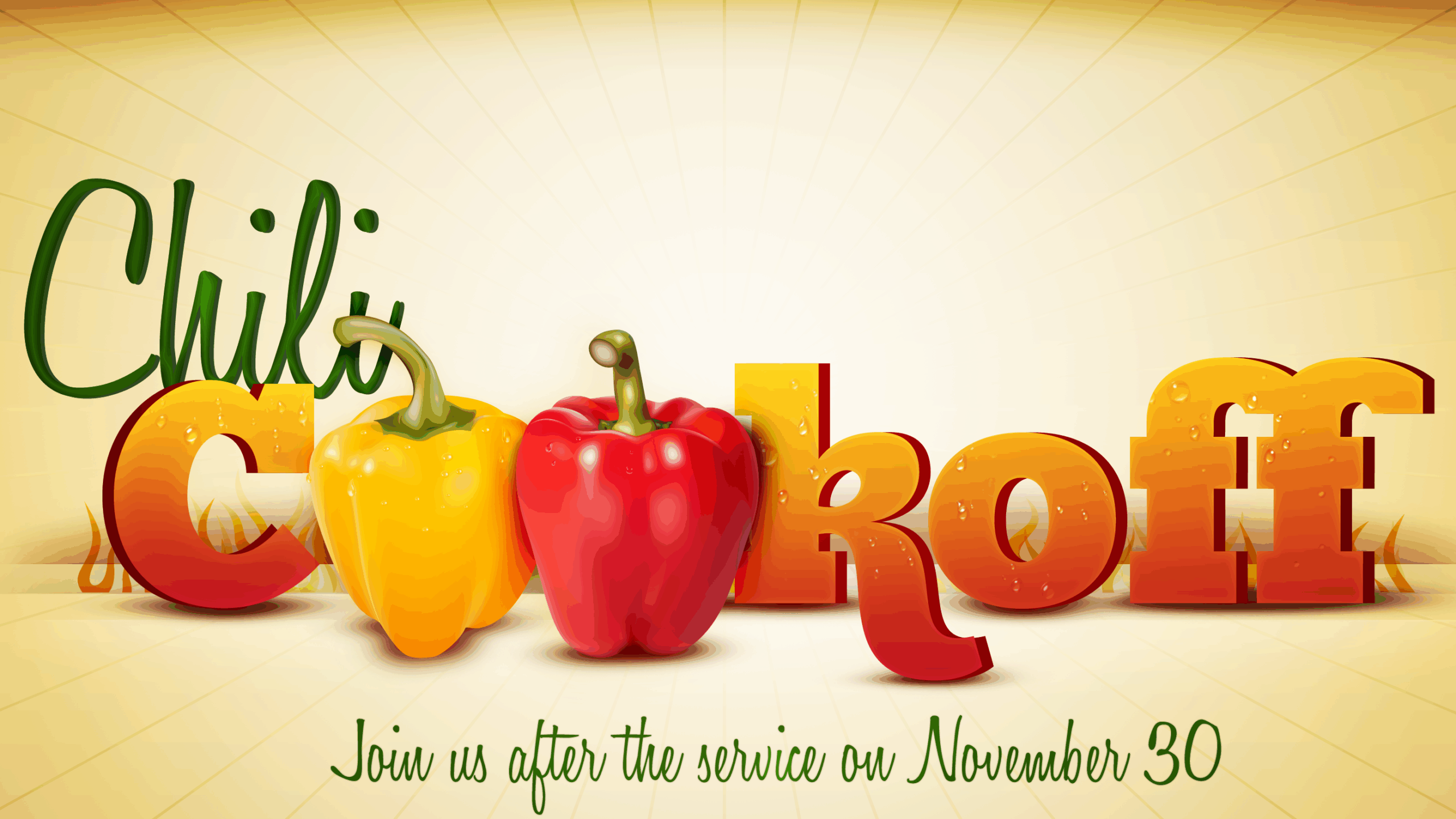 Join us after worship on Sunday, November 30, for a Chili Cook-Off! Sign up in the foyer.